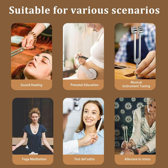 Experience the healing power of sound with this expertly crafted tuning fork set, designed to promote balance, recovery, and relaxation without relying on batteries or external power.